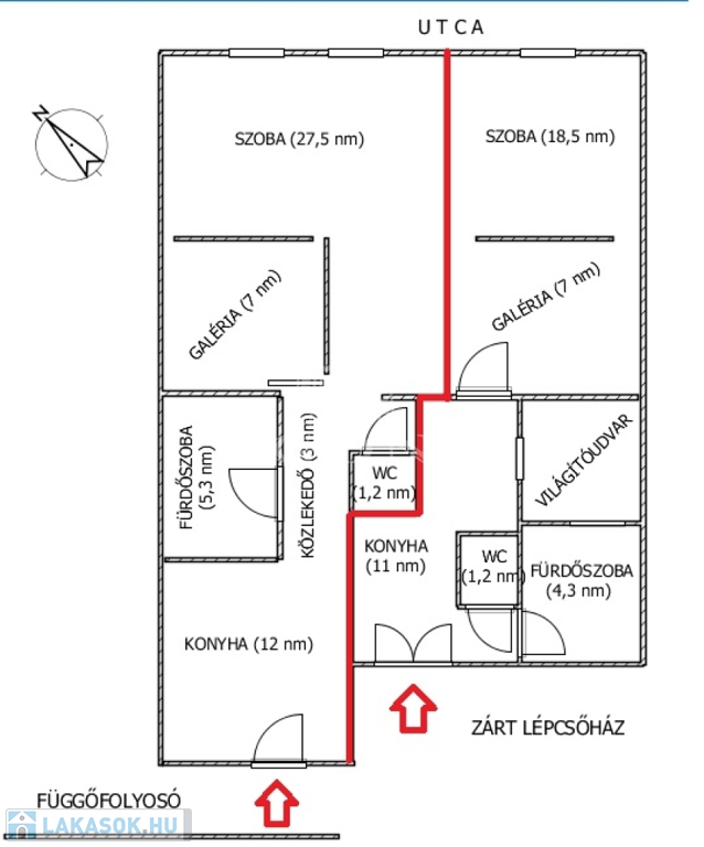 Fényárban úszó, jó elrendezésű (átalakított), igényesen és teljes körűen felújított, két lakássá alakított ingatlan eladó. Az egyik lakás közvetlenül a frissen renovált lépcsőházból nyílik, a másik függőfolyosóról, mely szélességéből adódóan erkélyként is funkcionálhat - egy madárcsicsergős, belső kertre néz.