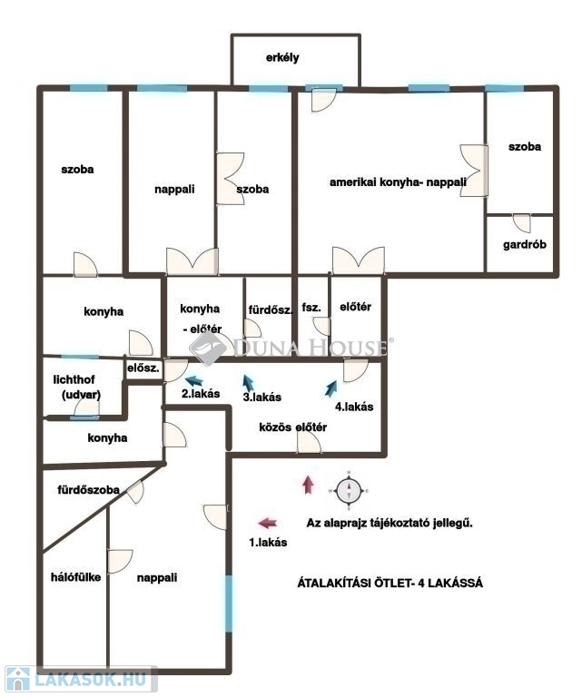 A lakás KÉT BEJÁRATOS, könnyedén 2-3-vagy akár 4 lakássá is osztható!