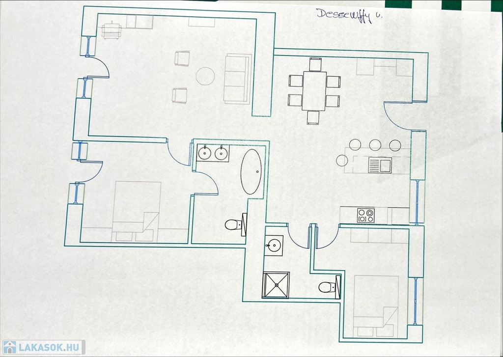 - két fürdőszoba, az egyik káddal, a másik zuhanyzóval.