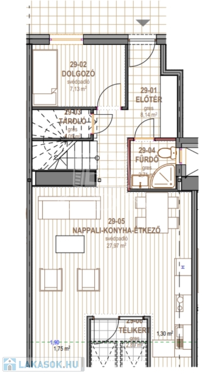 Az enteriőrt személyre szabottan alakítjuk ki, így otthonod megfelel az igényeidnek és kifejezi egyediségedet .Az apartman három hálószobához kétl fürdőszoba tartozik, valamint egy 3m2-es loggia is. A pontos beosztás az alaprajzon látható.