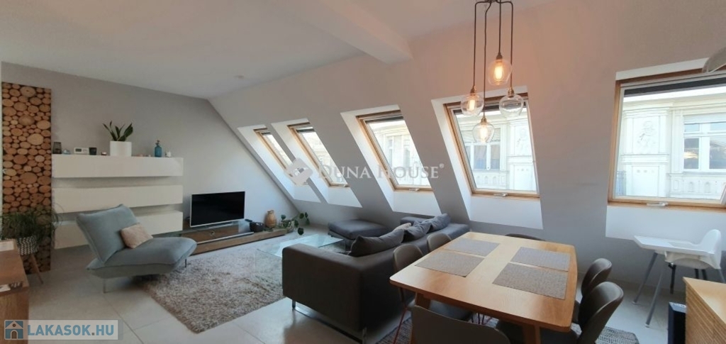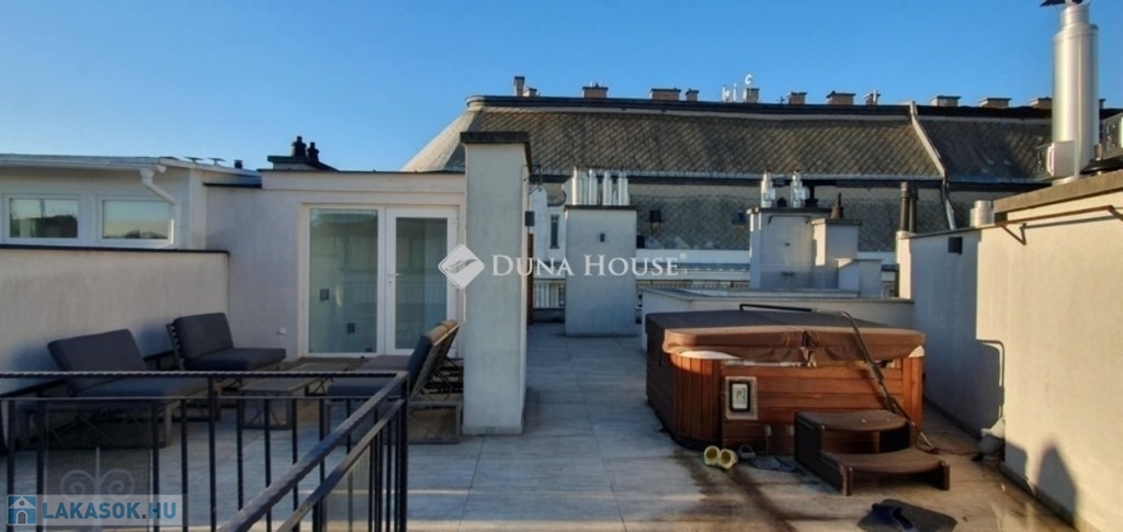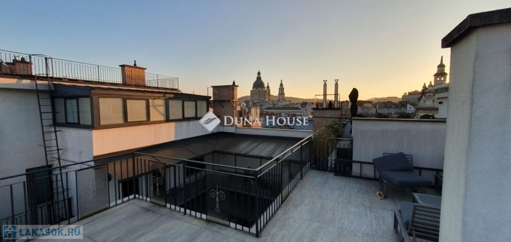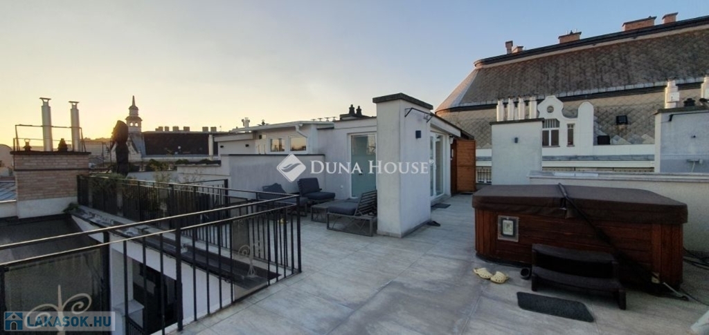 Eladó penthouse lakás Budapest szívében, a 6. kerületben lenyűgöző panorámával a Bazilikára - English belowKivételes lehetőség a város egyik legkeresettebb részén: eladó egy 89 m²-es, napfényes penthouse lakás a Terézváros elegáns utcái felett, az 5. emeleten, közvetlen rálátással a Bazilikára.A lakás elrendezése modern és kifinomult: impozáns nappali + 3 külön nyíló szoba, 2 kényelmes fürdőszoba, valamint egy intimebb terasz, amely az egyik hálószobához kapcsolódik. A nyugati tájolás egész napos természetes fényt és kellemes hangulatot ad, míg a padlófűtés és a 4 beépített klíma a tökéletes komfortot biztosítja.A nappaliból egy elegáns belső lépcső vezet fel az ingatlan valódi ékkövéhez: a 70 m²-es, saját használatú tetőteraszhoz, ahol szauna és jacuzzi teremtenek exkluzív, privát wellness-élményt mindezt a város fölött, hamisítatlan pesti hangulatban.Mindenek felettA penthouse tágas teraszáról páratlan látvány nyílik: a pesti bérházak karakteres, történelmi tetősora szinte díszletként terül el a szemünk előtt, s kicsit távolabb tekintve a Bazilika méltóságteljes kupolája rajzolódik ki. Ez a panoráma a város különleges, időtlen hangulatát idézi, egyszerre modern és romantikus és minden napszakban új arcát mutatja.Kinek ajánlom?Ez az ingatlan azoknak szól, akik nem csupán egy lakást keresnek, hanem egy olyan életteret, amely valóban kiemelkedik a városi kínálatból. Azoknak, akik értékelik a minőséget, a letisztult eleganciát, a privát luxust és a belváros felett megélhető csendes pillanatokat.A 70 m²-es tetőterasz, a szauna, a jacuzzi, a lenyűgöző panoráma és a magas szintű műszaki felszereltség olyan életstílust kínál, amelyet csak kevesen választanak de akik választják, pontosan tudják, miért.További információért és megtekintésért kérem, keressen bizalommal! Penthouse apartment for sale in the heart of Budapest, District 6 with a stunning panorama of the BasilicaA unique opportunity in one of the citys most sought-after areas: a 89 m² sunny penthouse apartment is for sale above the elegant streets of Terézváros, on the 5th floor, with a direct view of the Basilica.The layout of the apartment is modern and refined: an impressive living room + 3 separate bedrooms, 2 comfortable bathrooms, and an intimate terrace connected to one of the bedrooms. The western orientation ensures natural light and a pleasant atmosphere throughout the day, while underfloor heating and 4 built-in air-conditioning units provide full comfort.From the living room, an elegant internal staircase leads to the most exceptional highlight of the property: the 70 m² private rooftop terrace, where a sauna and jacuzzi create an exclusive, private wellness experience above the city.Above AllFrom the spacious terrace of the penthouse, a unique view opens up: the characteristic, historic rooftops of Pests residential buildings unfold in front of us like a theatrical backdrop, and looking slightly further, the dignified dome of the Basilica rises into view. This panorama evokes the citys special, timeless atmosphere simultaneously modern and romantic and reveals a new face at every moment of the day.Who do I recommend it to?This listing is for those who are not simply looking for a new home, but for a living space that truly stands out from the rest. For those who appreciate quality, refined elegance, private luxury, and the peaceful moments that can be experienced above the bustle of the city center.The exceptional features of the property the 70 m² rooftop terrace, the sauna, the jacuzzi, the breathtaking panorama, and the high-level technical equipment offer a lifestyle chosen only by a few, and those who choose it know exactly why.For more information and to schedule a viewing, please feel free to contact me!