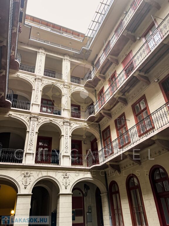A lakás egy impozáns, 19. századi, ötemeletes, liftes belvárosi társasház harmadik emeletén található.