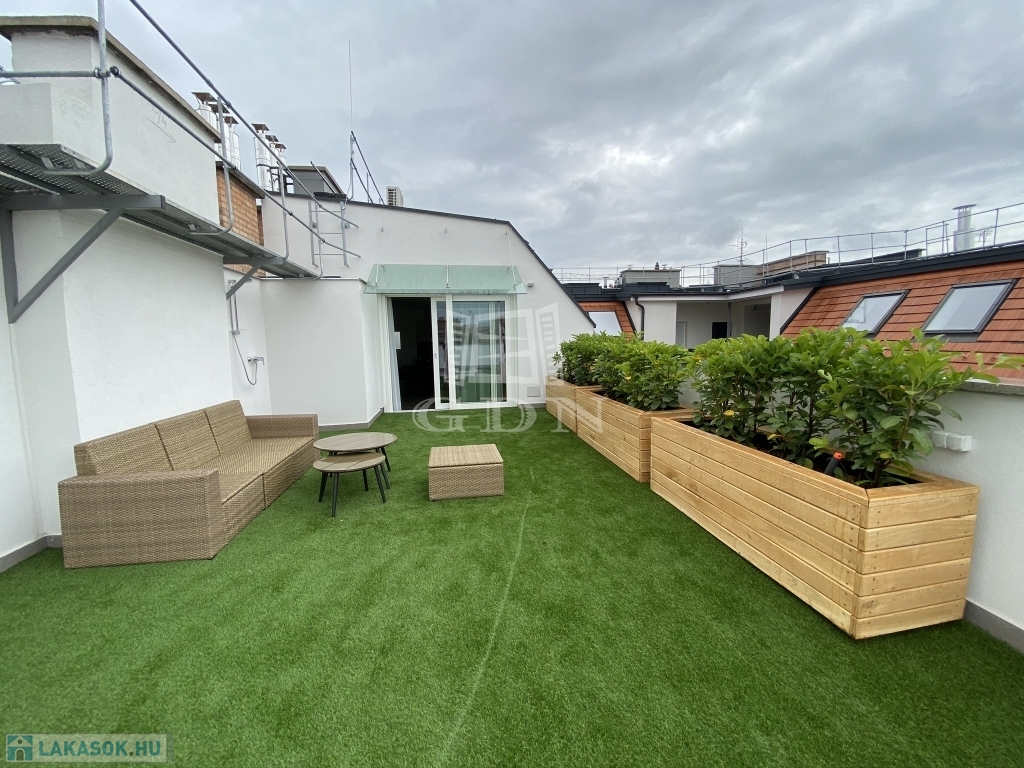 Nagymező utca közelében ajánljuk figyelmébe ezt az új építésű dupla komfortos, két hálószobás, nagy teraszos lakást. Az épület a beépítéssel párhuzamosan teljesen megújult, a lakás az ötödik emeleten található , a két hálószoba mellett két fürdőszoba került kialakításra. A lakás különlegessége a nappaliból nyíló 66m2-es terasz mely tavasztó őszig egy plusz szobát jelent. A lakás fűtése padlófűtés és gázkazán kombinációval lett megoldva mely a melegvizet is biztosítja.A hűtés split klímákkal megoldott, a konyha gépesített. A lakás jelenleg hosszú távra van bérbe adva 4,6% fizet évente a bérlő. Az elhelyezkedésének köszönhetően akár vagy rövidtávú bérbeadásra is tökéletes lehet.