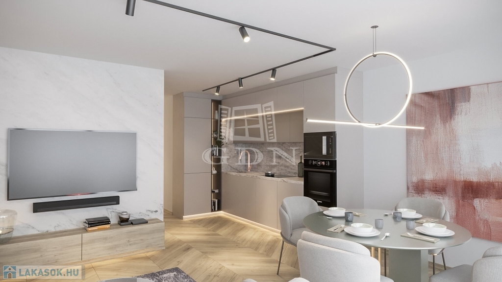 A kubatúrába integrálódó zöld teraszok, tetőteraszok panorámája, modern építészeti térkapcsolatokkal és nagy üvegfelületekkel egyesül. Az így kialakult nyitott tágas és napfényes terek, tovább erősítik az ingatlan egyediségét. Fontos cél, hogy a lakás belsőépítészeti vezetéssel, intelligens megoldásokkal került kialakításra. Kiemelt figyelmet kapott az anyagok minősége és a beépített technológa.