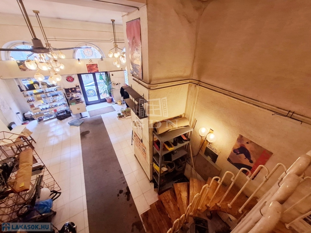 Nagykörúton belül, Nagymező utcában Eladó egy 120 nm-es alapterületű + 20 nm-es galériás utcai bejáratú üzlethelyiség, amihez tartozik a házban egy magasföldszinti 47 nm-es, 2 galériás, 1+1 félszobás, gázkonvektoros fűtésű, közepes állapotú lakás.