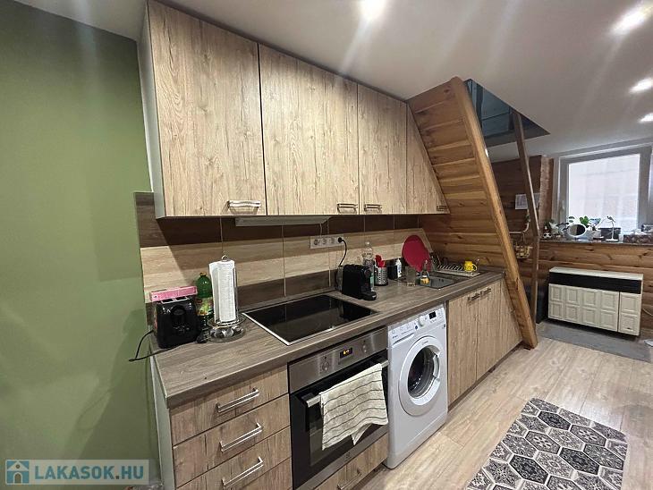 Az ingatlan 19 m² alapterületű, amelyet egy 17 m²-es, teljes belmagasságú állógaléria egészít ki – így a hasznos tér kényelmesen megnövekszik. A lakás okosan kialakított: a galérián tágas hálórész, a földszinten pedig nappali, konyha és zuhanyzós fürdőszoba található.