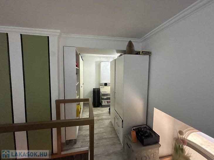 Az ingatlan 19 m² alapterületű, amelyet egy 17 m²-es, teljes belmagasságú állógaléria egészít ki – így a hasznos tér kényelmesen megnövekszik. A lakás okosan kialakított: a galérián tágas hálórész, a földszinten pedig nappali, konyha és zuhanyzós fürdőszoba található. A konyha teljesen gépesített, modern háztartási gépekkel felszerelt.