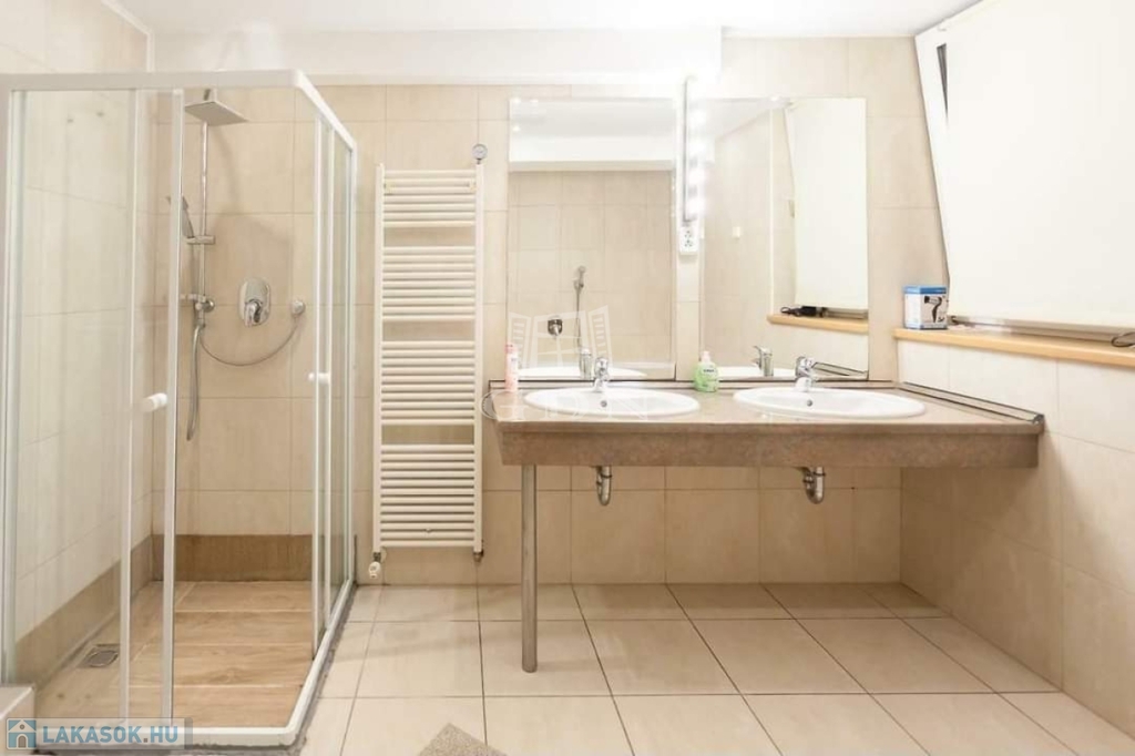 tetőtérben: 2 db / két szoba-fürdőszoba-WC és 1 db / szoba-fürdőszoba kialakított helyiségek, továbbá 1 db / konyha-étkező, terasz, tetőtéri lépcsővel kialakított helyiség.