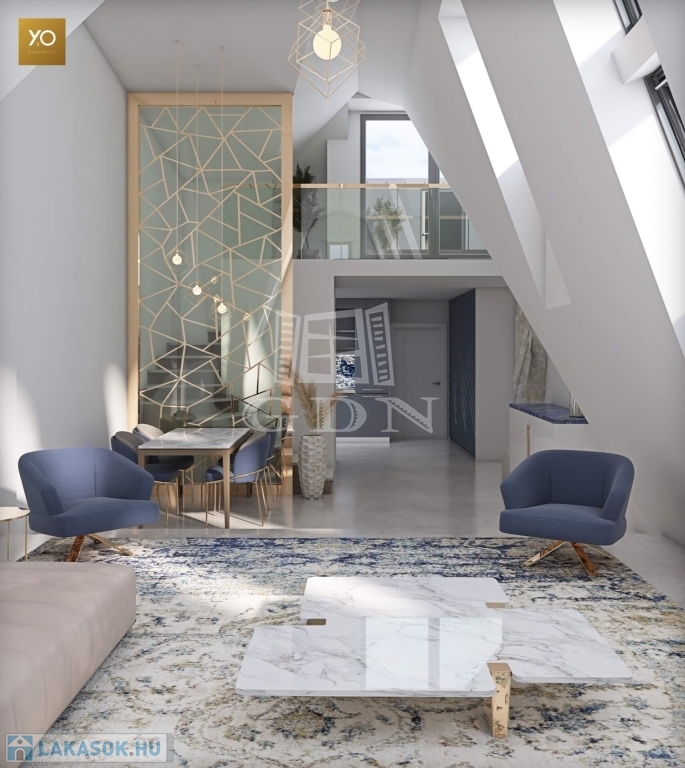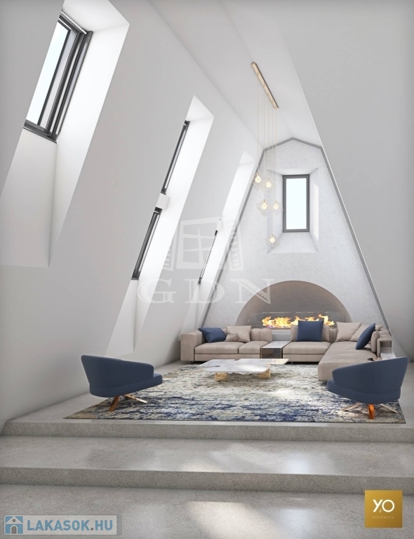 Egy klasszikus épület, melynek teljes körű felújítása során, a legfelső szinten, a padlástéren 4 modern, tetőteraszos okos otthon kerül kialakításra.