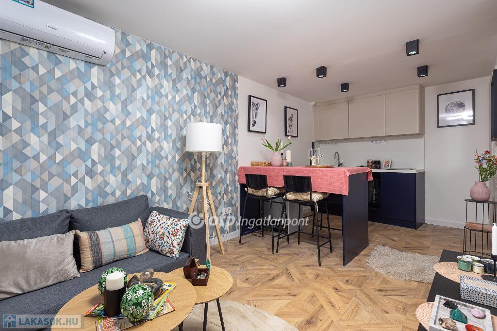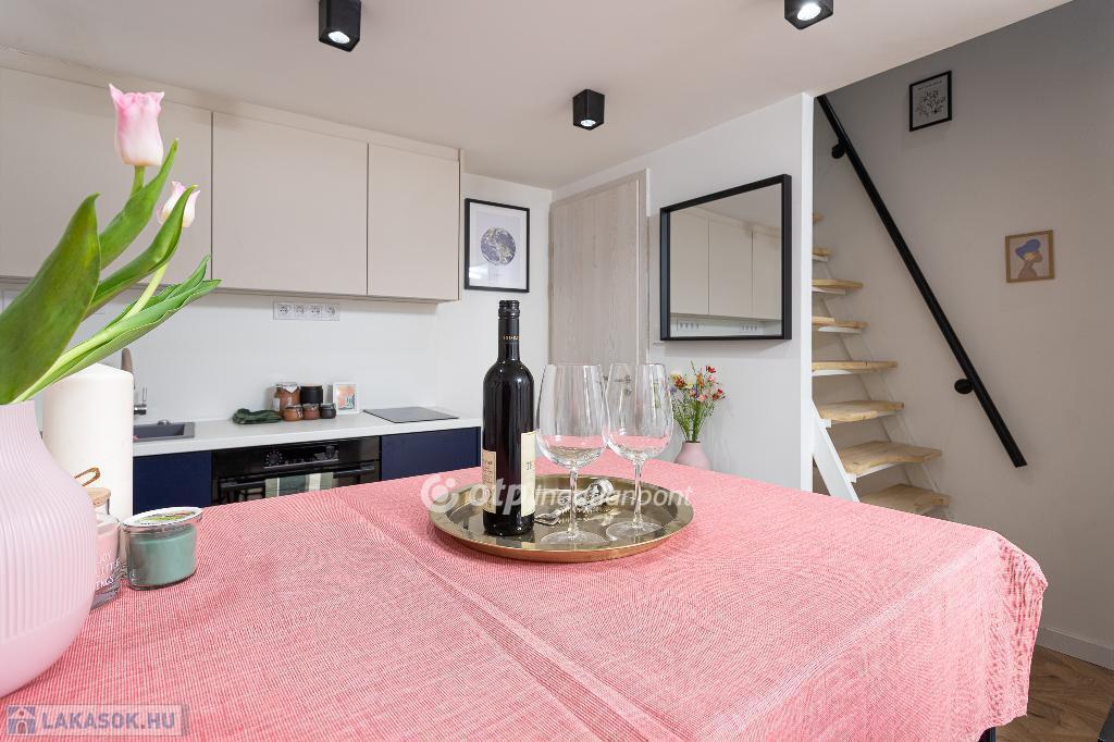 Eladó Budapesten a 6. kerületben (Eötvös utca) egy TELJESKÖRŰEN FELÚJÍTOTT ÉS BERENDEZETT, 36 m2-es belső 2 szintes luxus téglalakás. Igazi kis ékszerdoboz, mely befektetésnek is kiváló! A lakás ügyvédi megosztással kerül értékesítésre. (A mellette lévő lakás már elkelt). A teljes berendezéssel, (magas minőségű konyhai gépekkel, bútorokkal) együtt eladó. Fűtése elektromos, energiatakarékos led izzókkal történik a világítás (padlófűtés + 2 klíma). A nyílászárók műanyagok. Teljes vezetékcsere és aljzatszigetelés, burkolatcsere, szanitercsere történt, a lakás AZONNAL KÖLTÖZHETŐ!