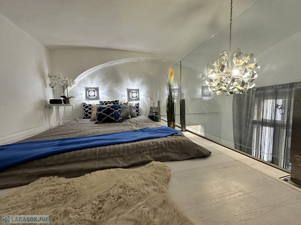 A lakás összkomfortos, praktikus elrendezésű, a galériának köszönhetően jól szeparált élettérrel rendelkezik. A modern, gépesített konyha a vételár részét képezi. Udvari fekvése miatt csendes, mégis abszolút belvárosi életérzést nyújt.