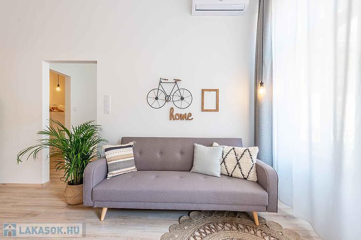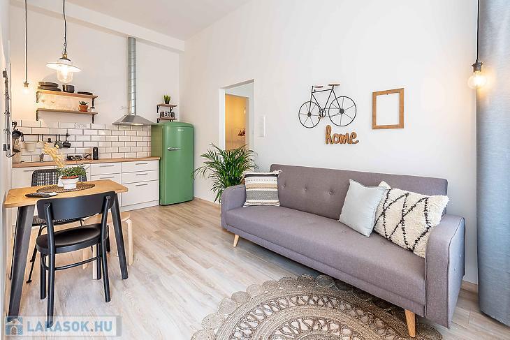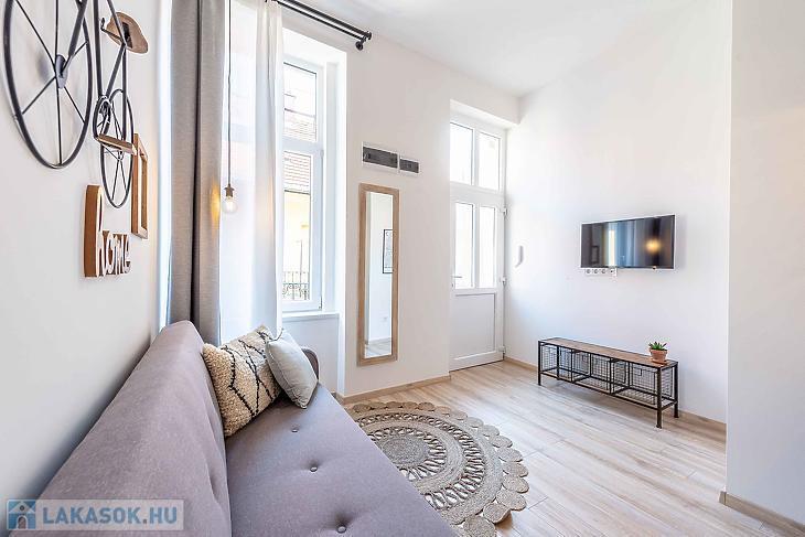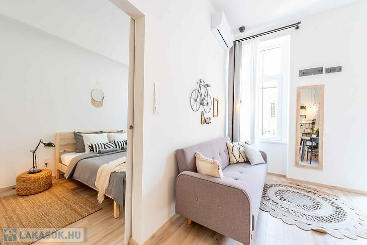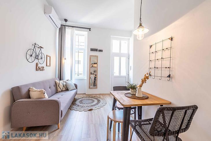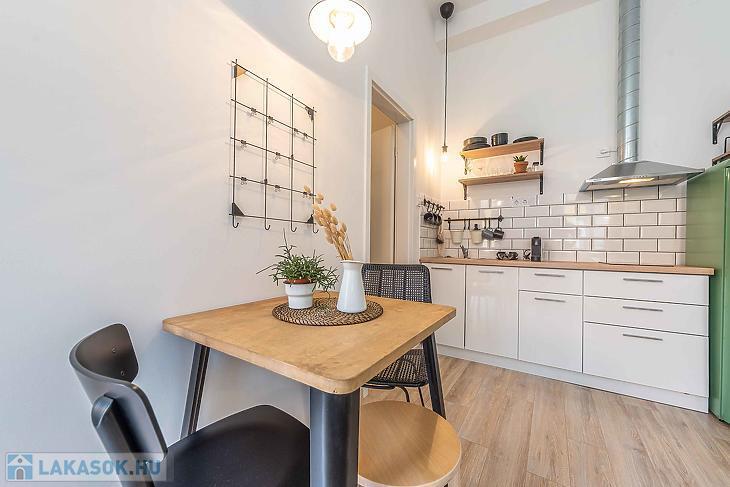 Eladó felújított, 2 szobás lakás a VI. kerületi Dessewffy utcában – szép társasházban, használati megosztással! Eladásra kínálunk egy 30 négyzetméteres, teljes körűen felújított, 2 szobás lakást Budapest VI. kerületének egyik közkedvelt utcájában, a Dessewffy utcában. Az ingatlan egy jó állapotú, rendezett társasházban található, csendes belső udvarra néző ablakokkal, így a nyugodt lakókörnyezet garantált. A lakás ízlésesen felújított, modern burkolatokkal, új konyhával és korszerű fürdőszobával rendelkezik. Elrendezése praktikus: egy nappali, egy külön nyíló hálószoba, valamint egy zuhanyzós fürdőszoba került kialakításra. Az ingatlan használati megosztással rendelkezik, amely rendezett jogi háttérrel, ügyvédi dokumentációval került kialakításra. A környék infrastruktúrája kiváló: pár perc sétára található az Oktogon, az Andrássy út, a Nyugati tér és a 4-6-os villamos vonala is, így a közlekedés kiváló. Éttermek, kávézók, üzletek, valamint kulturális programlehetőségek széles választéka érhető el a közelben. Ideális választás fiataloknak, egyetemistáknak vagy befektetés céljára, kiadásra is tökéletes lehetőség. Az adatok tájékoztató jellegű.