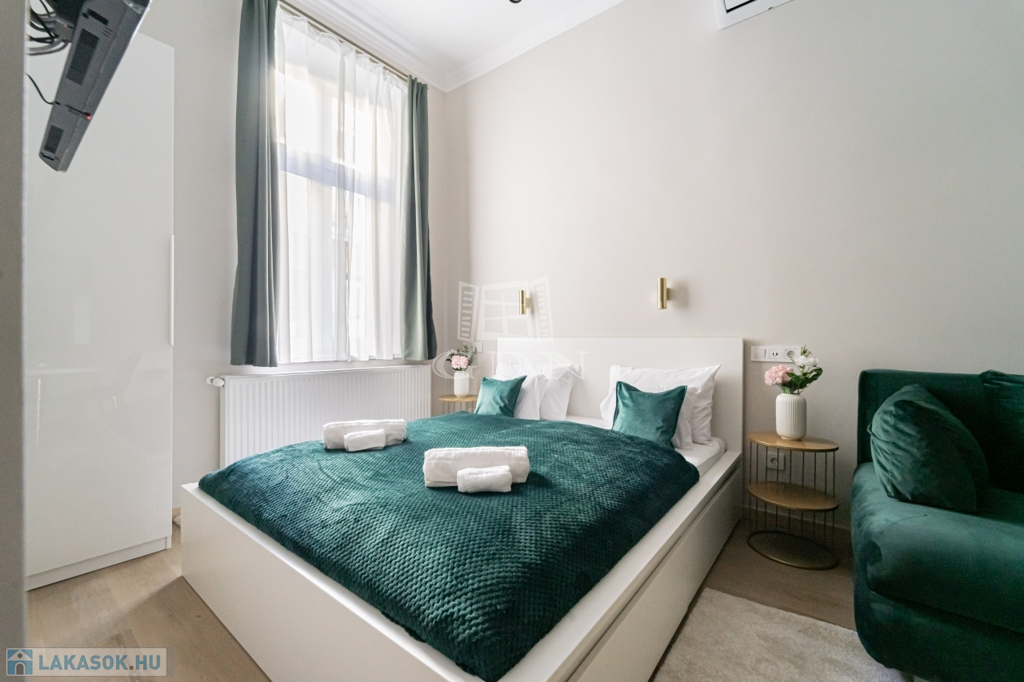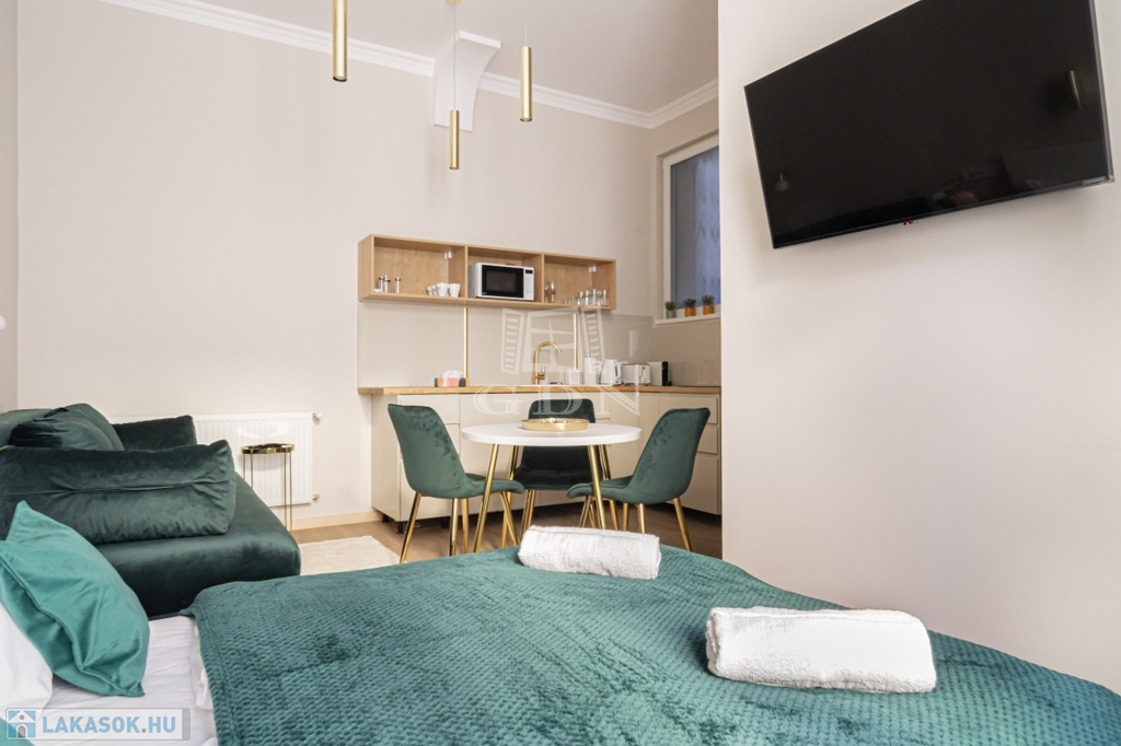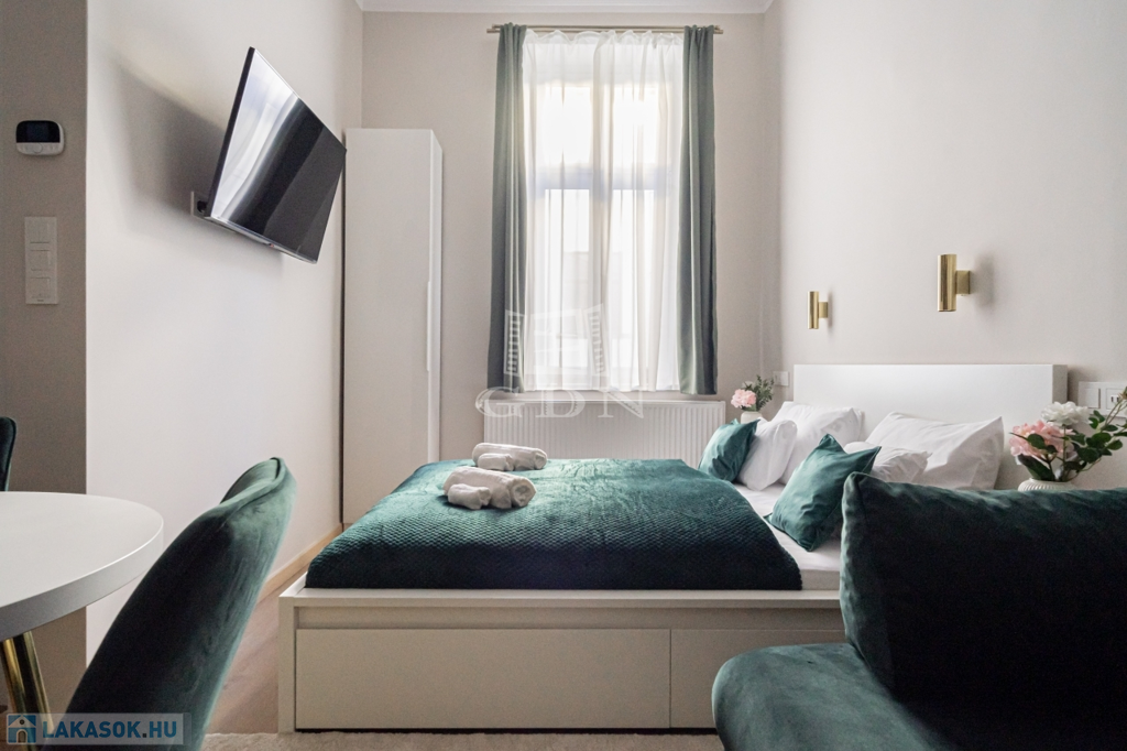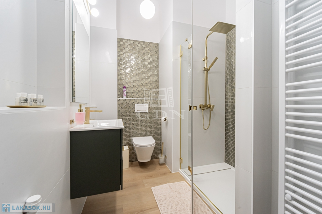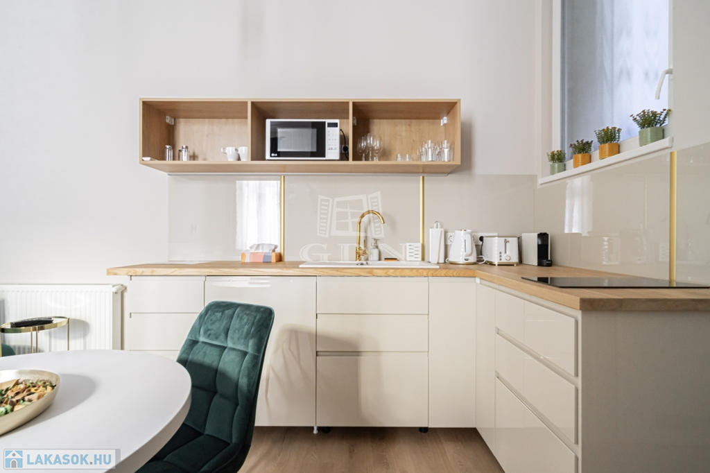 Az ingatlant két részre osztották, egy 30 nm-es és egy 41 nm-es teljeskőrüen felújított, rövidtávú kiadásra kialakított és felszerelt lakás lett belőle, melyet a teljes berendezéssel együtt, a képeken látható állapotban, ügyvédi használati megosztással értékesítünk.