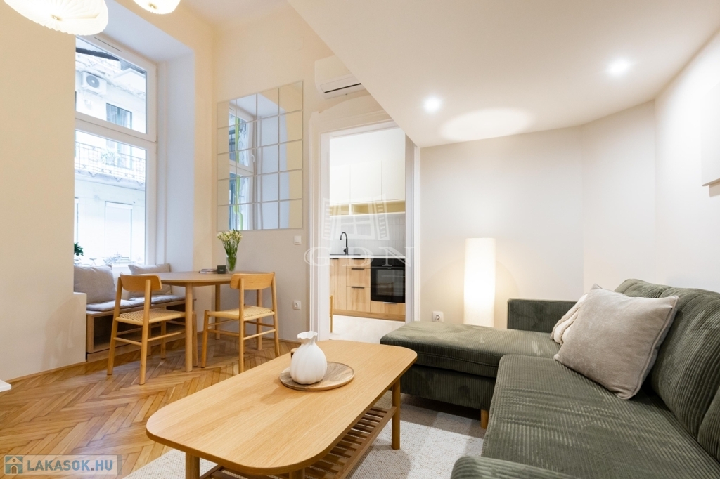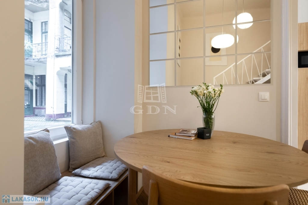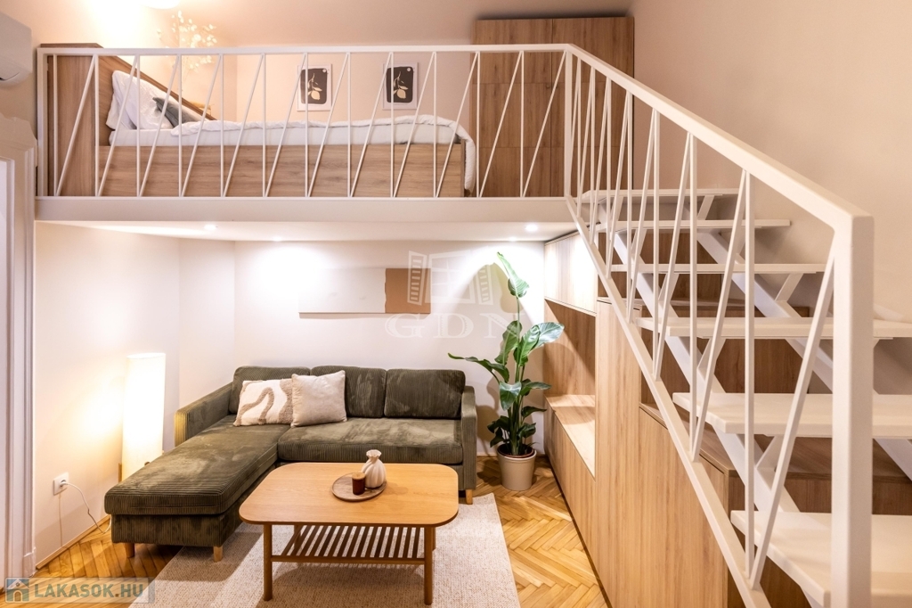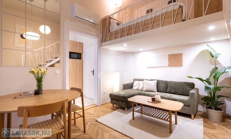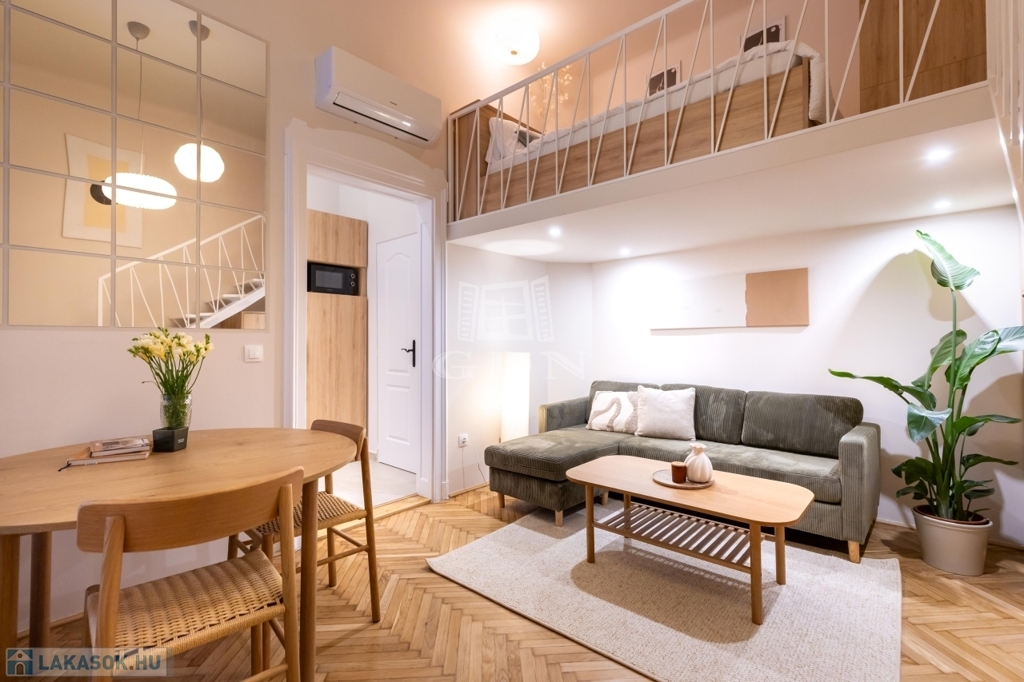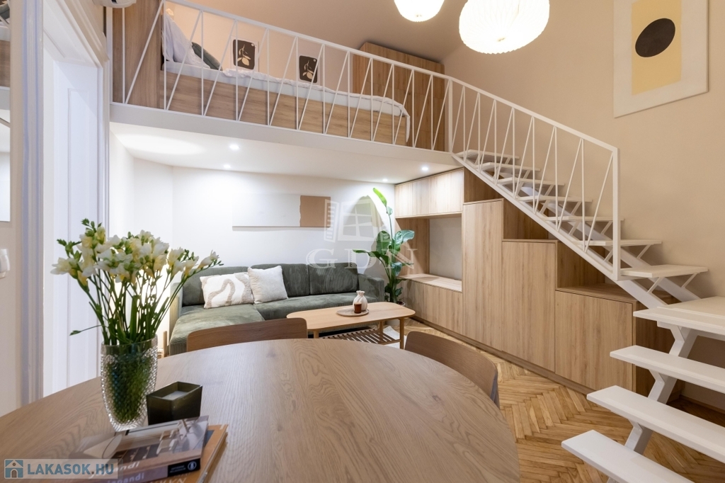 Budapest szívében, a VI. kerület egyik legkellemesebb, hangulatos utcájában várja új tulajdonosát ez a 22 m²-es, galériás (6,25 m2) kis lakás, amelyet lakberendező tervei alapján, teljes körűen felújítottak. A munkát profi kivitelező csapat végezte, akik nagy figyelmet fordítottak arra, hogy minden centiméter praktikus és harmonikus legyen.