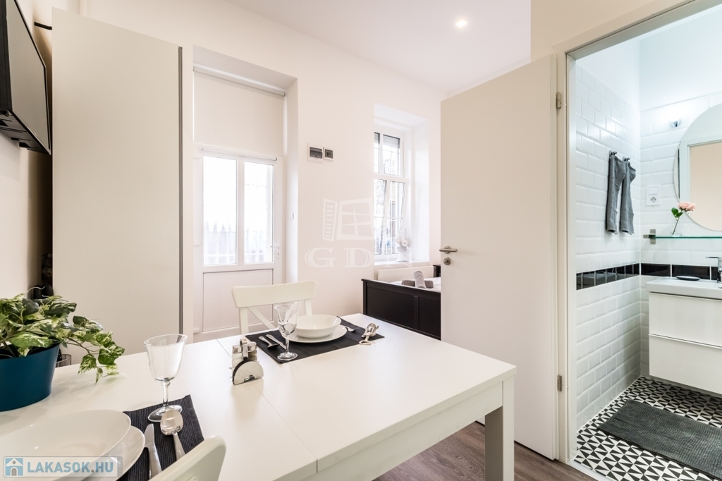 Budapest VI. kerületében, a Weiner Leó utcában, kiváló elhelyezkedéssel kínálunk eladásra egy 38 m²-es, 1. emeleti, udvari fekvésű ingatlant, amelyet kifejezetten bérbeadási célra alakítottak ki két önálló, külön bejáratú stúdiólakássá (18 m² és 20 m²).