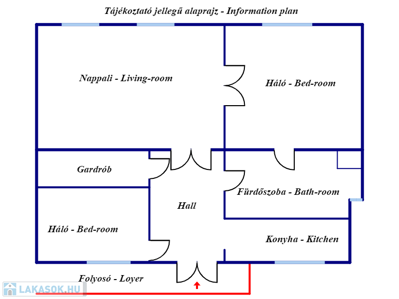 Jelenlegi kialakítás szerint, egy kis-szobányi gardrób áll rendelkezésre, vendégszobával, berendezett, igényes konyhával. A nagy ablakos fürdő szintén teljesen felújított, fa hatású csempével, és igényes zuhannyal van ellátva.