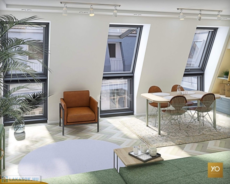 A lakások egyedisége egyrészt a régi idők és a modern kor ötvözetében rejlik. Egy klasszikus épület, melynek teljes körű felújítása során, a legfelső szinten 12 modern, tetőteraszos okos otthon kerül kialakításra.