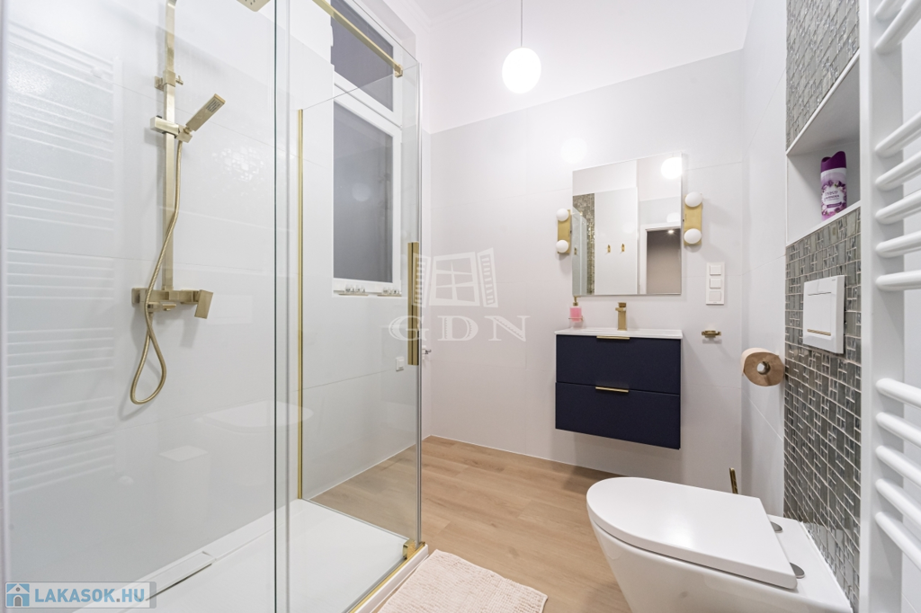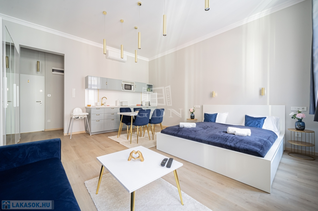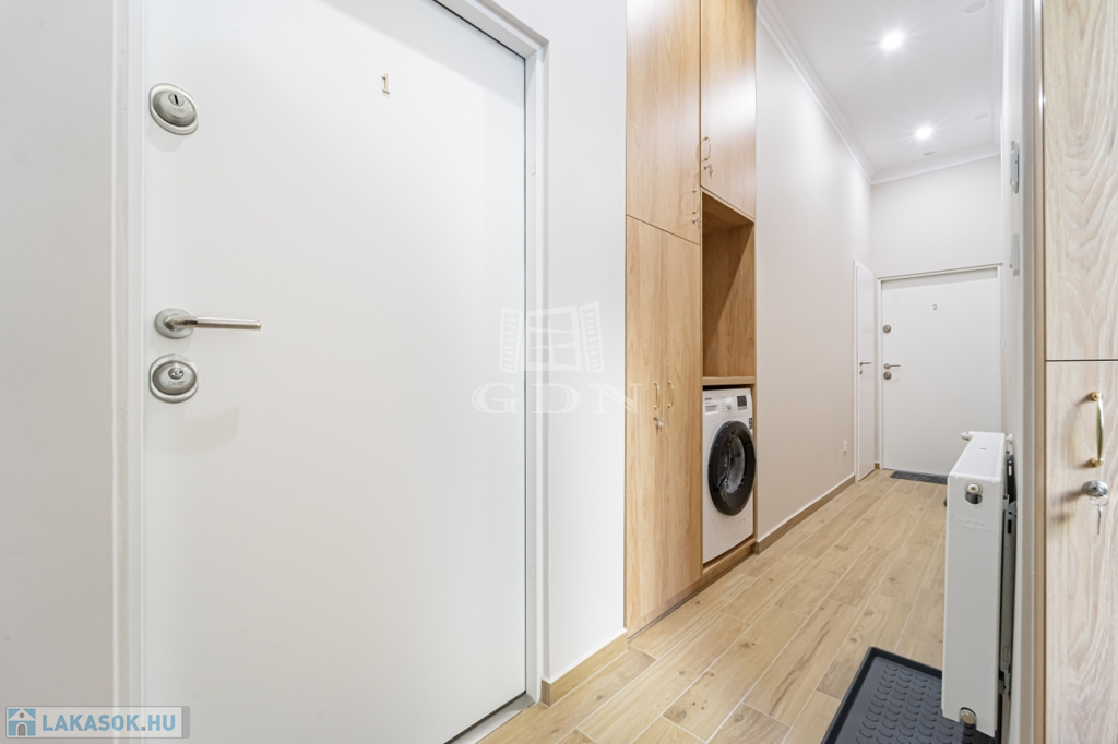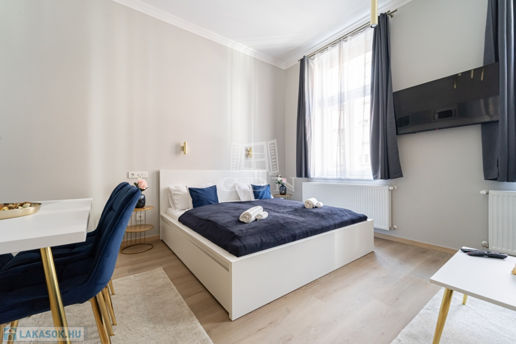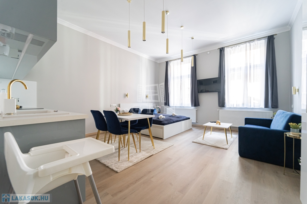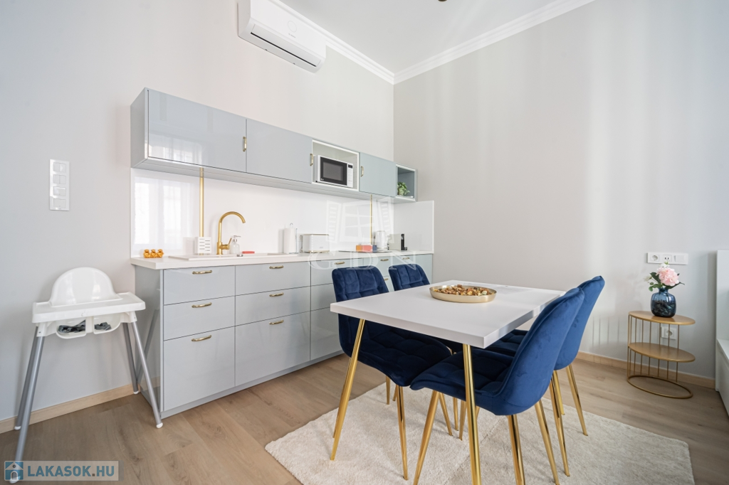 Az ingatlant két részre osztották, egy 30 nm-es és egy 41 nm-es teljeskőrüen felújított, rövidtávú kiadásra kialakított és felszerelt lakás lett belőle, melyet a teljes berendezéssel együtt, a képeken látható állapotban, ügyvédi használati megosztással értékesítünk.