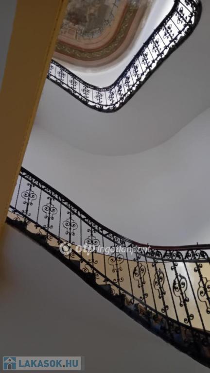 Gyönyörű, freskóval díszített lépcsőházban az első emeleten helyezkedik el a lakás, két bejárati ajtóval rendelkezik, amelyekből az egyik a lépcsőházból, a másik a körfolyosóról nyílik. 4,1 méteres belmagassága, hatalmas három méteres fa ajtajai tágas teret biztosítanak. A belmagasság miatt praktikusan galériázható.