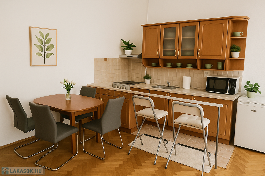 egész nap világos, mégis csendes, mivel a forgalomtól távolabb eső, nyugodt utcára néz. A 3. emeletnek és a magas belmagasságnak köszönhetően tágas, levegős, otthonos tér fogad.