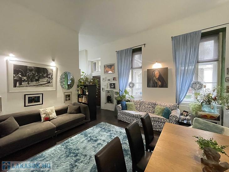 A 61 m²-es, két szobás plusz galériás lakás a történelmi hangulatú épületben található, amely nevét egykori tulajdonosáról, Ellinger Gusztávról - hegedűművészről és pedagógusról - kapta, aki az 1890-es években birtokolta a ház egyik részét. A palota ma is a környék egyik különleges, történeti hangulatú épülete, és a társasház két éve esett át felújításon, így rendezett, jó állapotú környezetben várja új tulajdonosát.