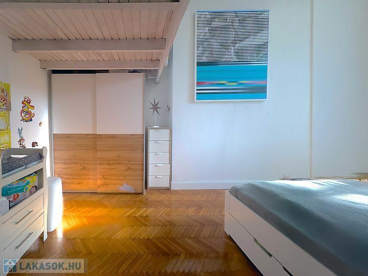 Az épületben lift található, így a lakás könnyen megközelíthető. Az ingatlan két külön nyíló hálószobával, egy világos nappalival, konyhával, valamint külön fürdőszobával és WC-vel rendelkezik, továbbá egy külön tároló is tartozik hozzá. A nagyobbik szobában galéria került kialakításra, ahol a belmagasság a galérián kb. 160 cm, alatta pedig kb. 210 cm, így praktikus plusz teret biztosít akár háló, akár tárolás céljára.