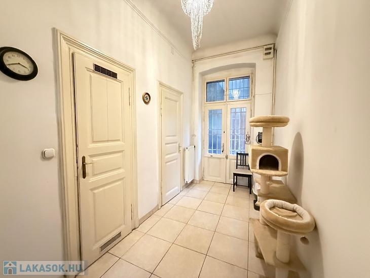 Az ingatlan kiváló elosztású, jelenleg 4 szoba plusz konyha kialakítású, így nagycsaládosoknak, irodai célra vagy befektetésnek is ideális választás lehet. A lakás ablakai utcára és belső udvarra egyaránt néznek, ennek köszönhetően egész nap kellemes fényviszonyok jellemzik. A 360 cm-es belmagasság tágas, elegáns térérzetet biztosít, és akár galéria kialakítására is lehetőséget ad.