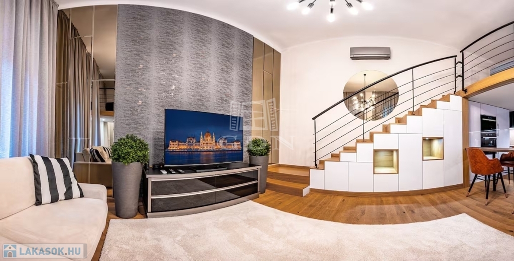 Budapest VI. kerületének egyik legkeresettebb utcájában, a Podmaniczky utcában kínálunk megvételre egy exkluzív, luxus szinten felújított, galériás lakást, amely jelenleg is sikeresen működő Airbnb-ként üzemel, érvényes engedéllyel.
