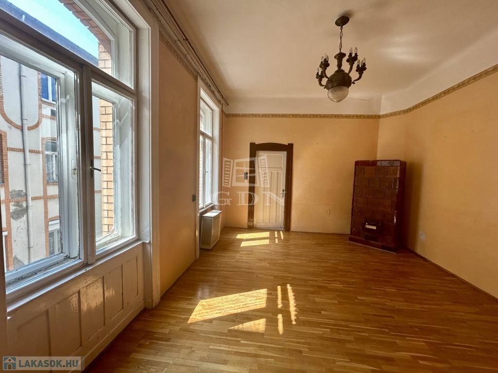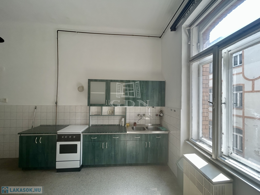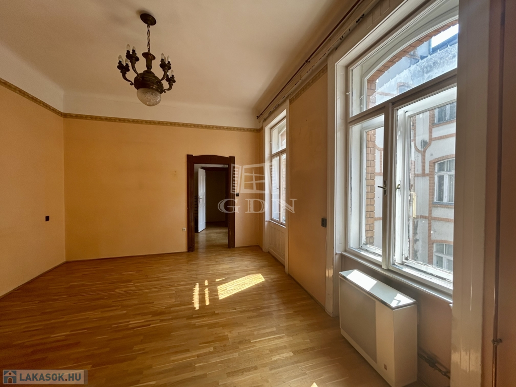 A lakás ablakai a csendes belső udvarra néznek, a nagy belmagasság és a szép íves ablakok karakteres hangulatot adnak. A tágas konyha igény szerint szobává is alakítható, a lakás belső elrendezése jól alakítható. A konyhából egy kamra is nyílik, a lakáshoz saját pincetároló tartozik.
