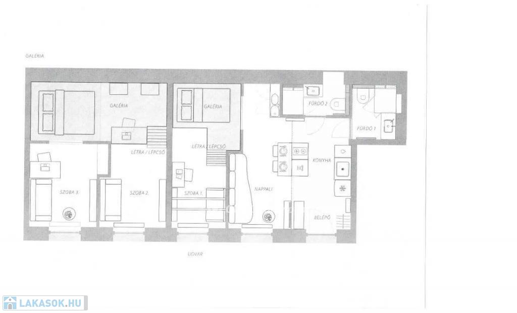 A tulajdoni lap szerint 71 nm-es alapterület a nagy belmagasság révén galériás megoldásokkal bővült.