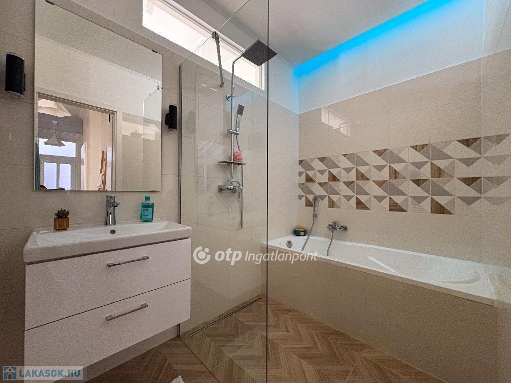 A lakásban esztétikailag és műszakilag színvonalas, a minőségi építőanyagok és burkolatok használatával felújítás történt.
