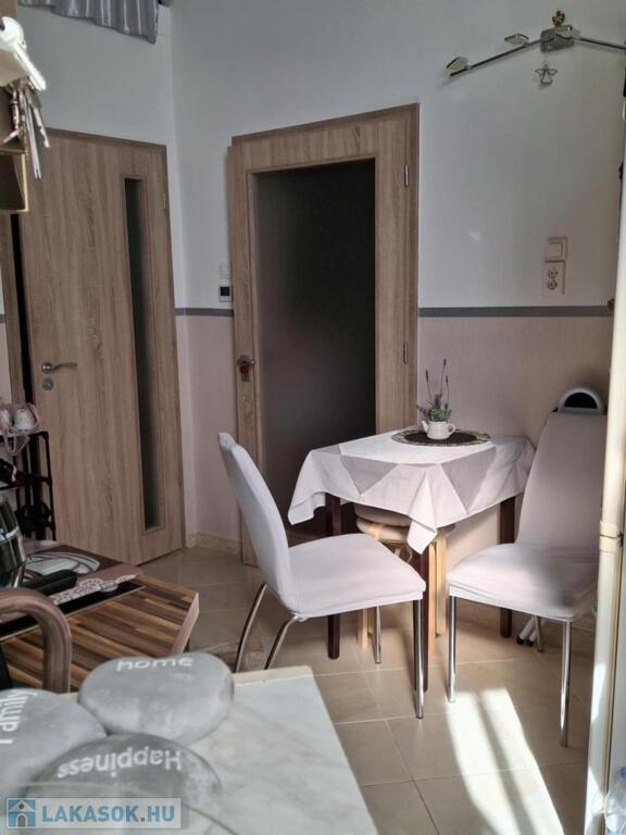Rendezett háromszintes lift nélküli társasház földszintjén egy helyrajzi számon lévő, 90 m-es, de két külön lakássá (50 m-es és 40 m-es) átalakított ingatlan eladó.
