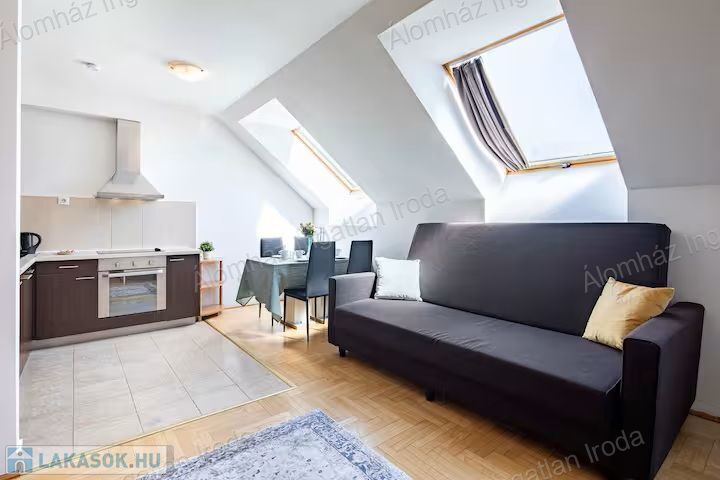 Eladó Budapest VII. kerületében, a Gozsdu Udvar közvetlen közelében, a Király utcában egy 57 m²-es, belső kétszintes (duplex), felújított lakás egy liftes társasház 3. (legfelső) emeletén.