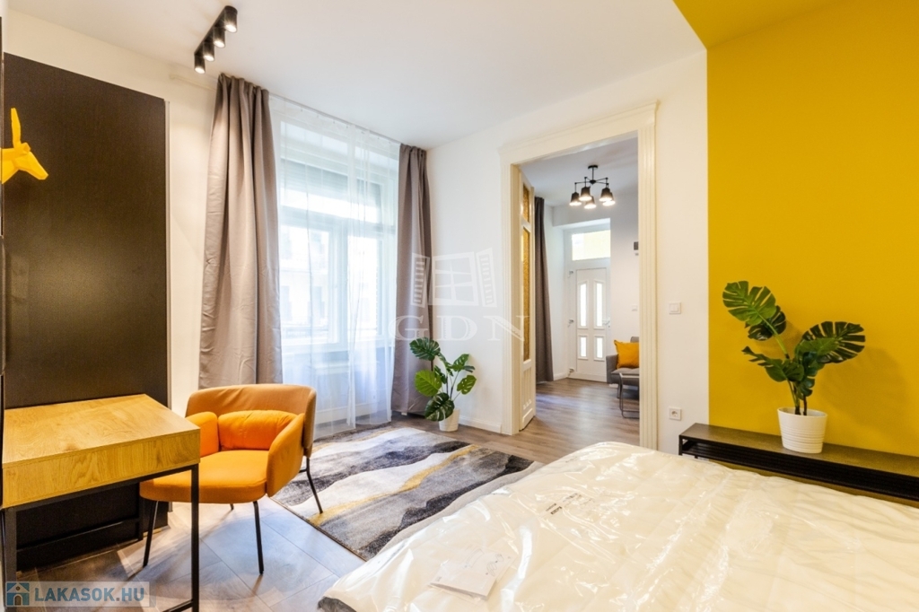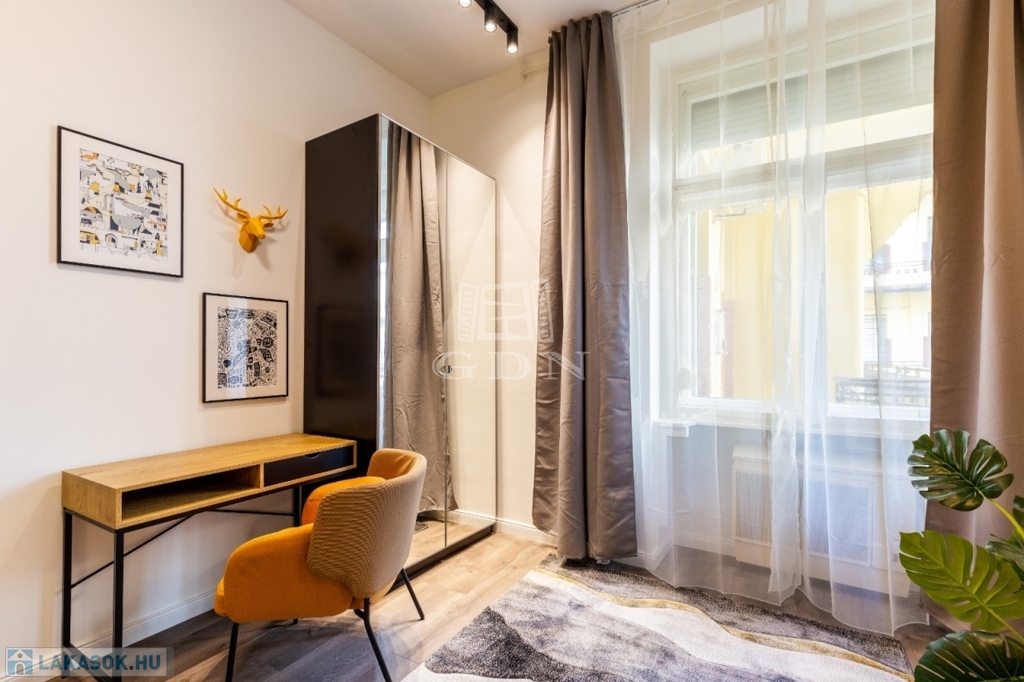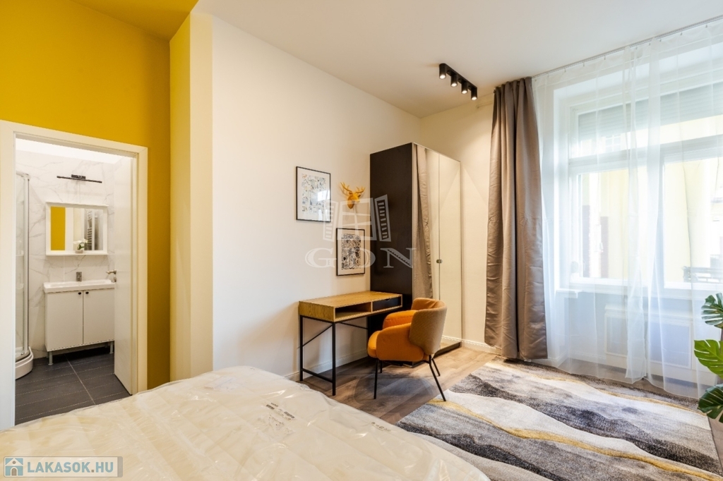 Eladó Budapest VII. kerületében, az Akácfa utcában egy igényesen felújított, 58 m²-es, első emeleti ingatlan, amely két különálló lakóegységre lett osztva.