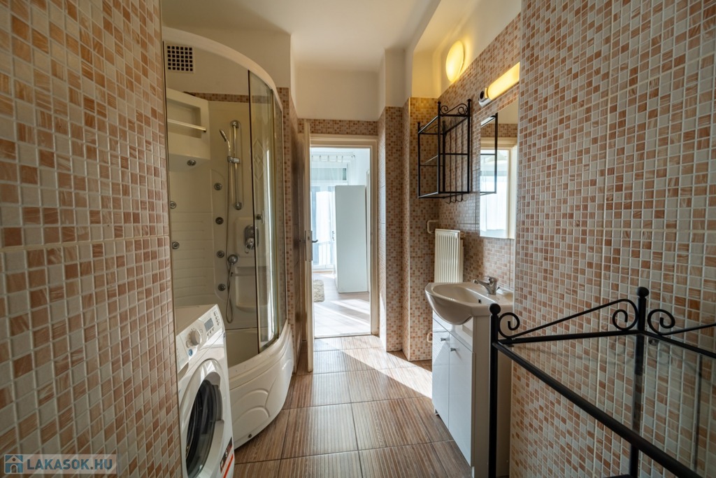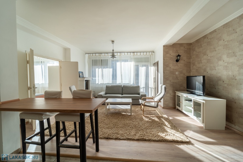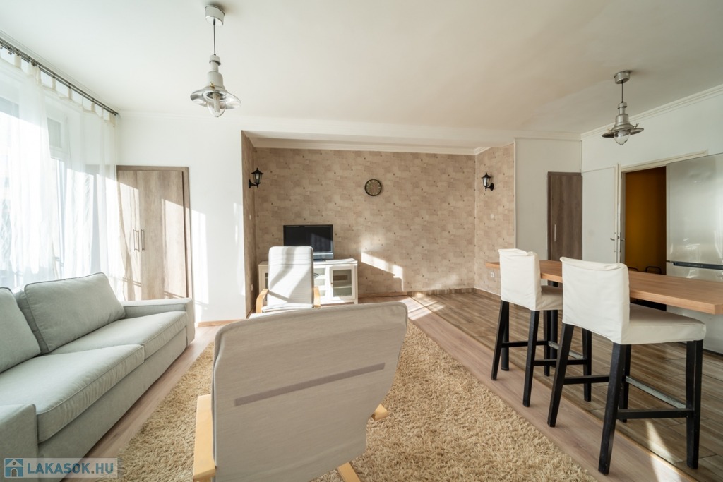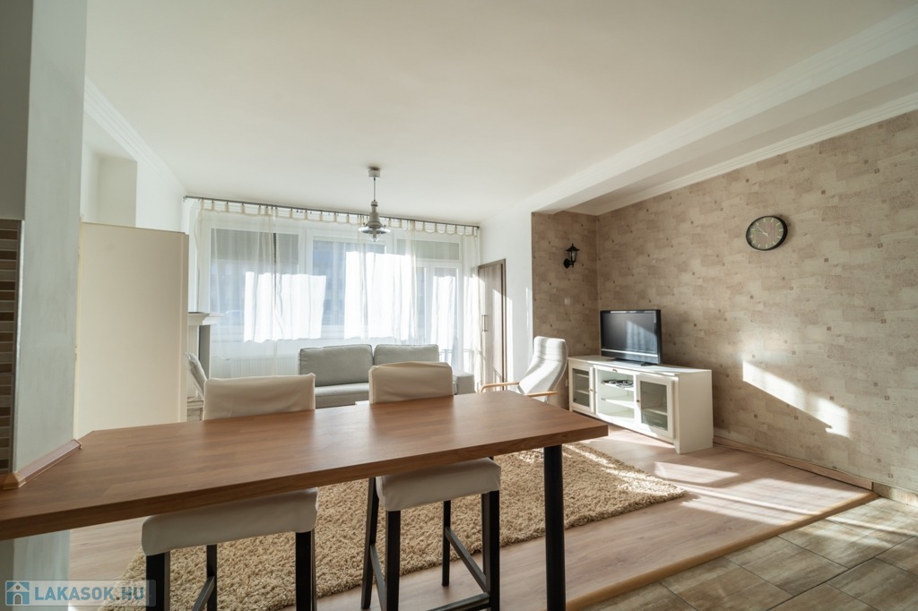 Komplett bútorozott és gépesített, a konyha mosogatógéppel és mikróval is felszerelt, de spájz és egyéb tárolóhelyek is kialakításra kerültek, a jelenlegi bérlők befektetési vásárlás esetén szívesen maradnának az ingatlanban.