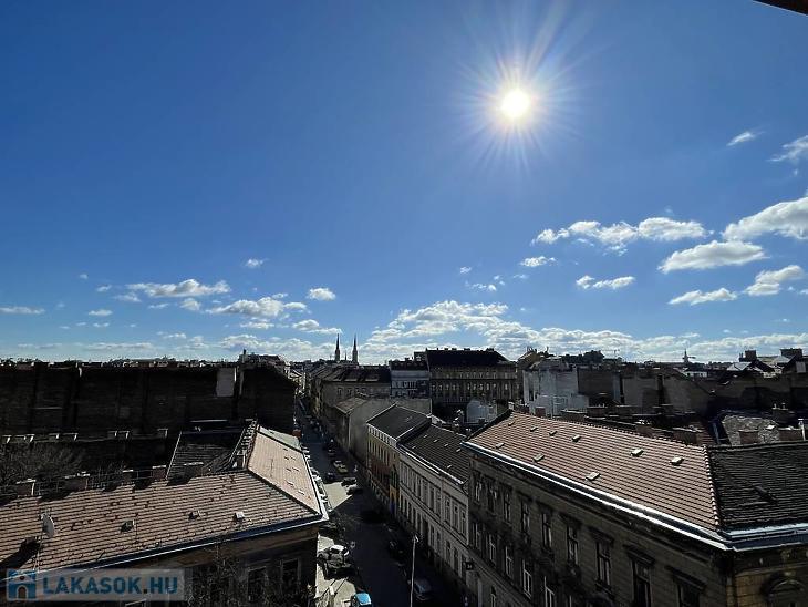 Eladó a VII. kerületben, a Jósika utcában, a Szenes Hanna park mellet egy igazán különleges hangulatú, panorámás kilátással rendelkező, nettó 60, bruttó pedig 80 nm-es, belső kétszintes (duplex) lakás egy 2007-ben épült, liftes társasház 5. emeletén.