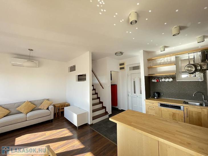 A modern elrendezésű, felújított állapotú ingatlan amerikai konyhás nappalival és két külön nyíló hálószobával rendelkezik, így kényelmes és jól elkülönülő életteret biztosít akár pároknak, akár kisebb családnak, de befektetésnek is kiváló választás.