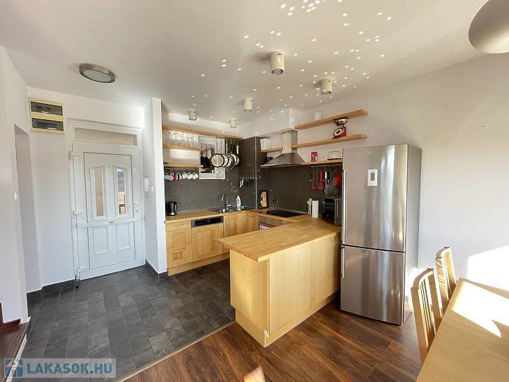 A nappaliból egy 2 nm-es erkély nyílik, ahonnan kellemes, nyitott panoráma tárul elénk, ami igazán egyedi atmoszférát ad az otthonnak. A felső emeleti elhelyezkedésnek köszönhetően a lakás világos, csendes. Az ingatlan tavaly friss festést kapott, négy éve pedig két új klímaberendezést szereltek be, aminek a kültéri egységei a tetőn kaptak helyet. Az ablakok redőnnyel és szúnyoghálóval is fel vannak szerelve, így a komfort minden évszakban biztosított.