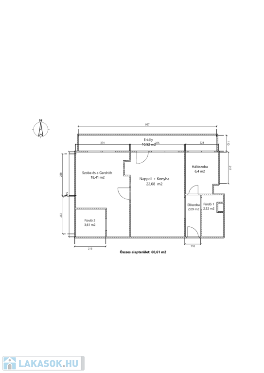 A második emeleti, 60 m²-es ingatlan átgondolt elrendezéssel rendelkezik: két teljes értékű szoba és egy félszoba, valamint két külön fürdőszoba és WC biztosítja a kényelmet – ideális választás pároknak, családoknak vagy hosszú távú bérbeadásra.