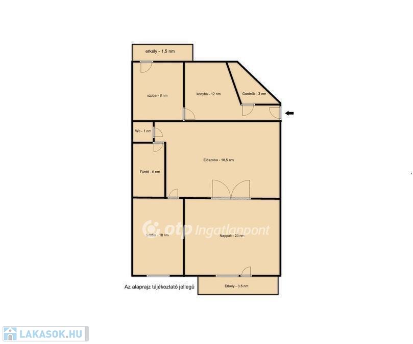 Az ingatlan 3 szobából, előszoba-hallból, konyhából, fürdőszobából és két erkélyből áll.