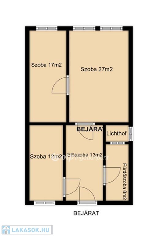 Jelenleg két különnyíló, kényelmes hálószoba került kialakításra, egy kisebb 12 m2-es és egy nagyobb 17 m2-es szoba, de a tulajdoni lapon 3 szobásként szerepel, így az elrendezés rugalmasan alakítható az új tulajdonos igényei szerint.