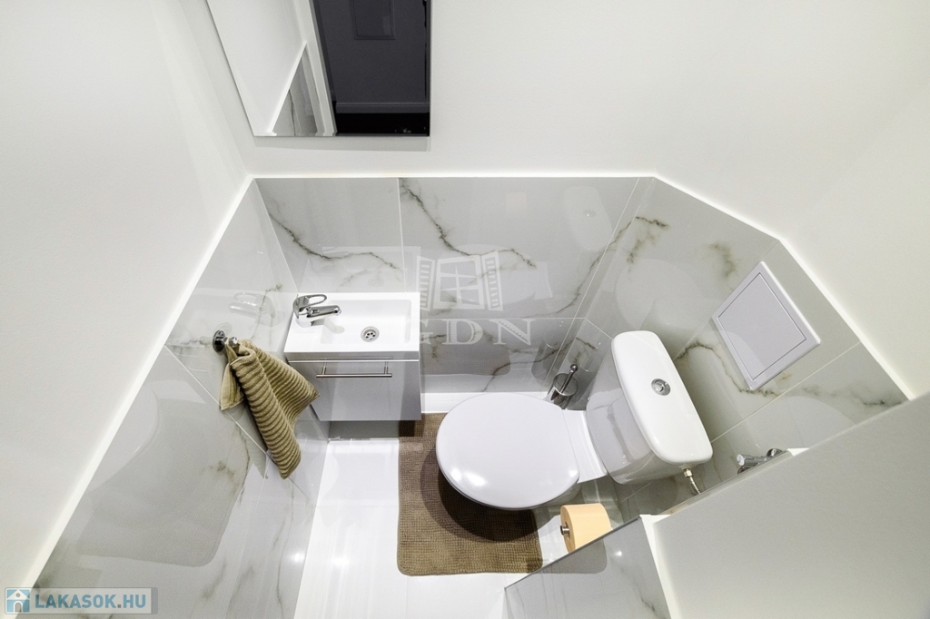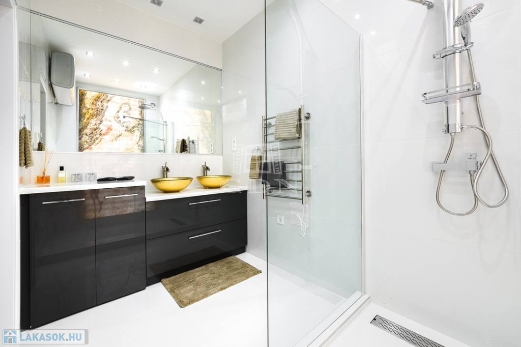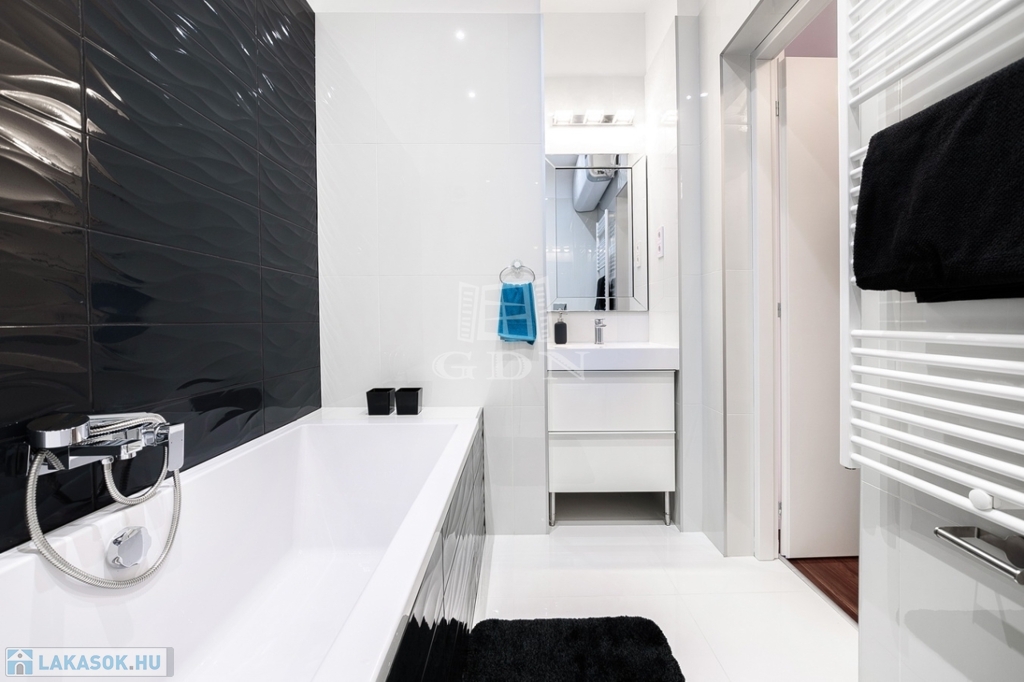 • Két fürdőszoba – az egyik káddal, a másik zuhanyzóval felszerelt, mindkettőben törölközőszárítós radiátor