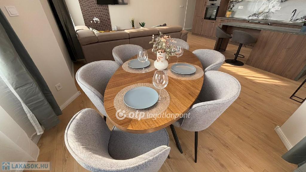 Eladó egy 124 nm-es, teljeskörűen és igényesen felújított lakás egy szép, liftes társasház harmadik emeletén. A minőségi anyagokkal végzett felújítás során a praktikum és az elegancia tökéletes egyensúlyára törekedtek, így egy tágas, világos, jól átgondolt elrendezésű otthon született. A nappali és a konyha egy térben kapott helyet, így kiváló közösségi élményt nyújt, míg a négy külön nyíló hálószoba biztosítja a család minden tagjának a nyugalmat.