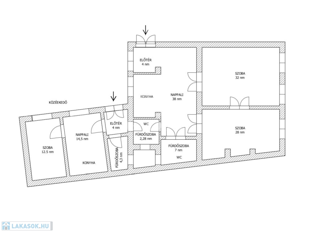 A LAKÁS 141 nm alapterületű, két KÜLÖN lakrésze van, ezek igény esetén összenyithatók.