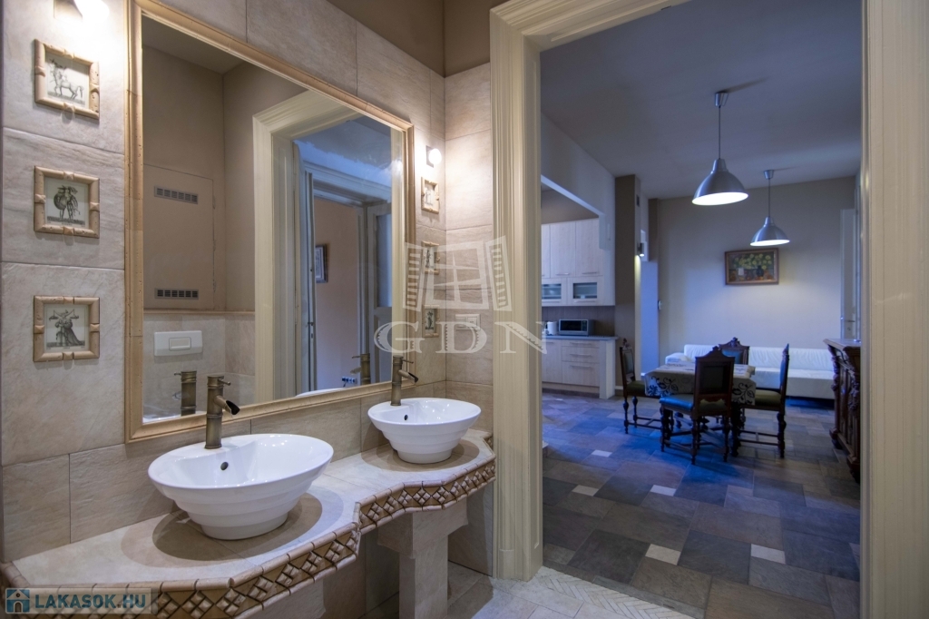 Belvárosban, turisztikailag frekventált helyen, (Blaha Lujza tér közelében) legfelső emeleti, két külön bejáratos lakrésszel rendelkező, napfényes nagypolgári lakás eladó.