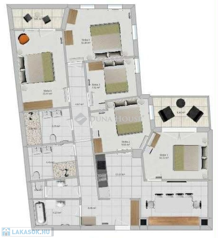 egy öt hálószobás, négy fürdőszobás, két erkélyes, luxus lakás, amely minden szempontból kiemelkedik a piaci kínálatból.