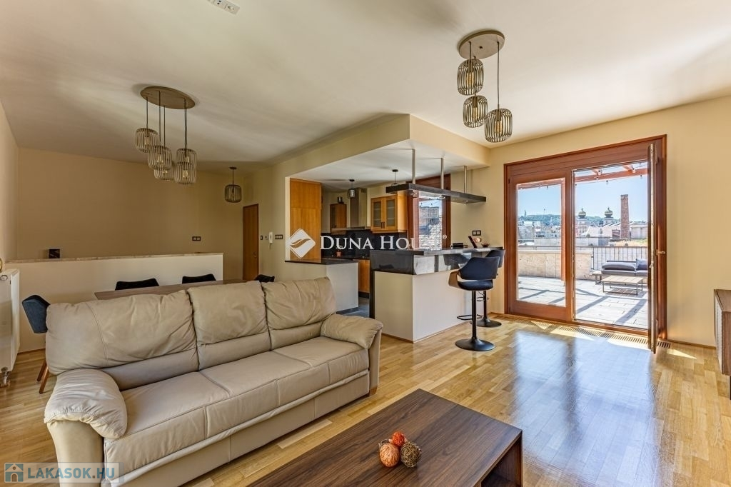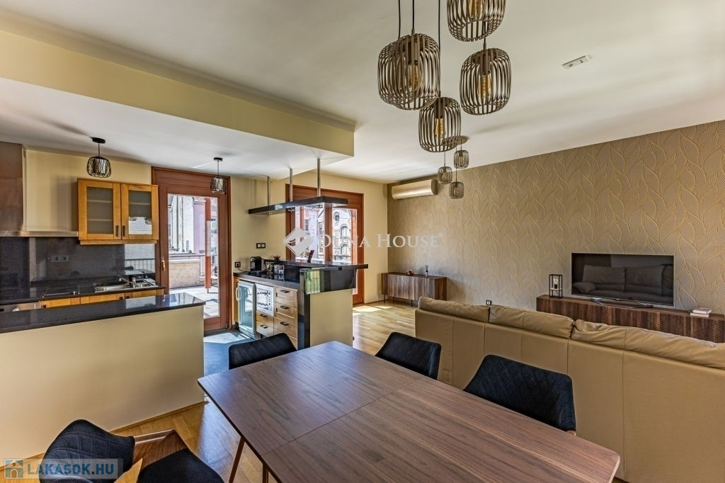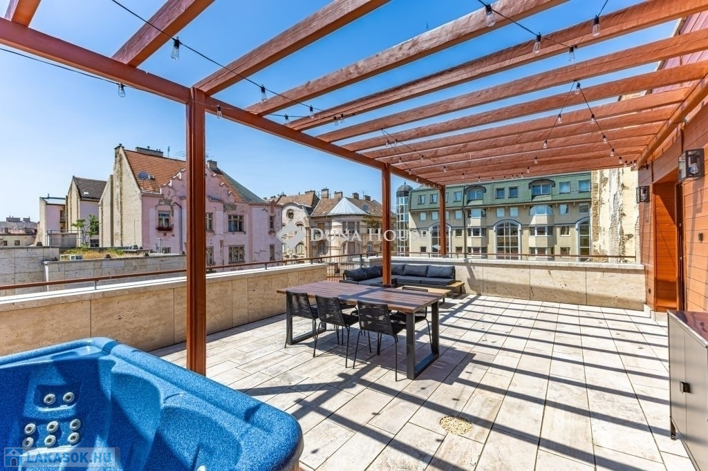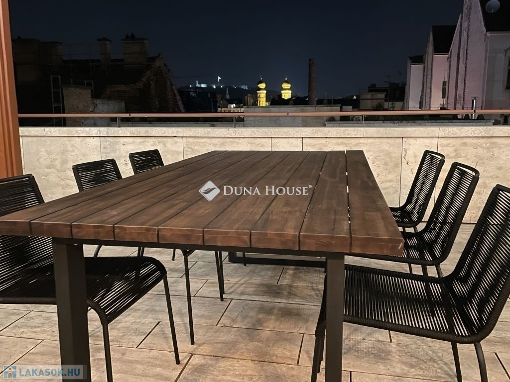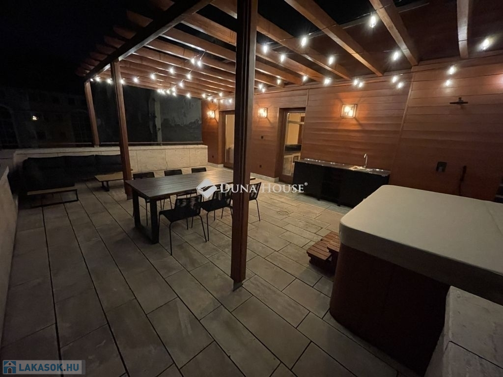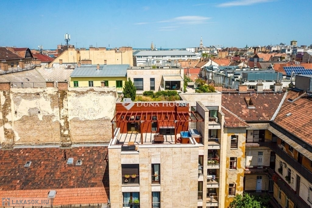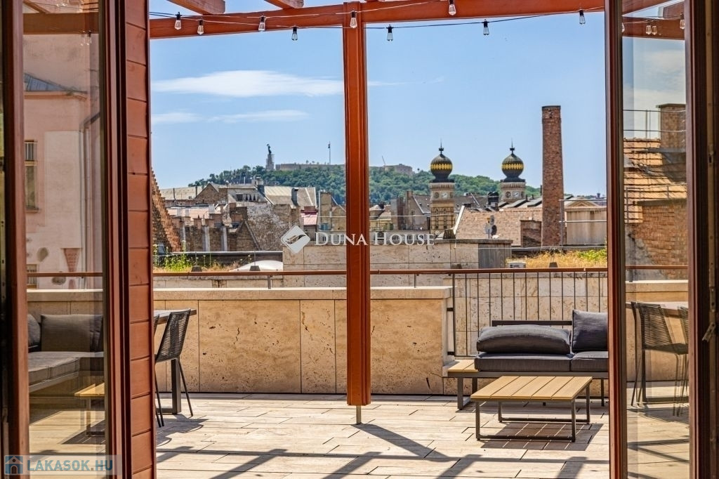 A történelmi zsidó negyed szívében, a Nagy Zsinagóga közvetlen szomszédságában, a Kazinczy utca állandó nyüzsgő gasztronómiai kavalkádjában lehet most az Öné egy 5. emeleti panorámás duplakomfortos reprezentatív penthouse lakás.Remek tereknek ad otthont az ingatlan, a nappali és az étkezős konyha egy térben található, mégis szeparált,így a társasági életet élők kompromisszumok nélkül élvezhetik a lakás előnyeit, amit a hatalmas méretű terasz és az itt található jacuzzi tesz igazán unikálissá és koronáz meg.Nem szabd megfeledkezni a külön nyíló hálószobákról sem, melyekhez saját fürdőszobák tartoznak, így gondoskodva az itt élők kényelméről. Infrastruktúra jó.