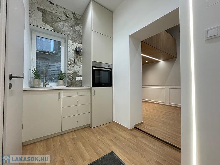Felújított, galériás földszinti lakás eladó a VII. kerületben, a csendes és rendezett Alpár utca egyik nyugodt társasházában.