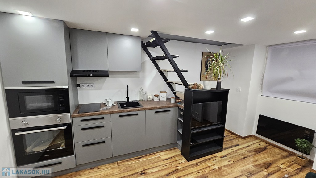 Mindegyik lakásban beépített konyhabútor lesz gépesítve ( 2 lapos főzőlap, filteres páraelszívó , beépített sütő, ) antracit szürke konyhabútor.