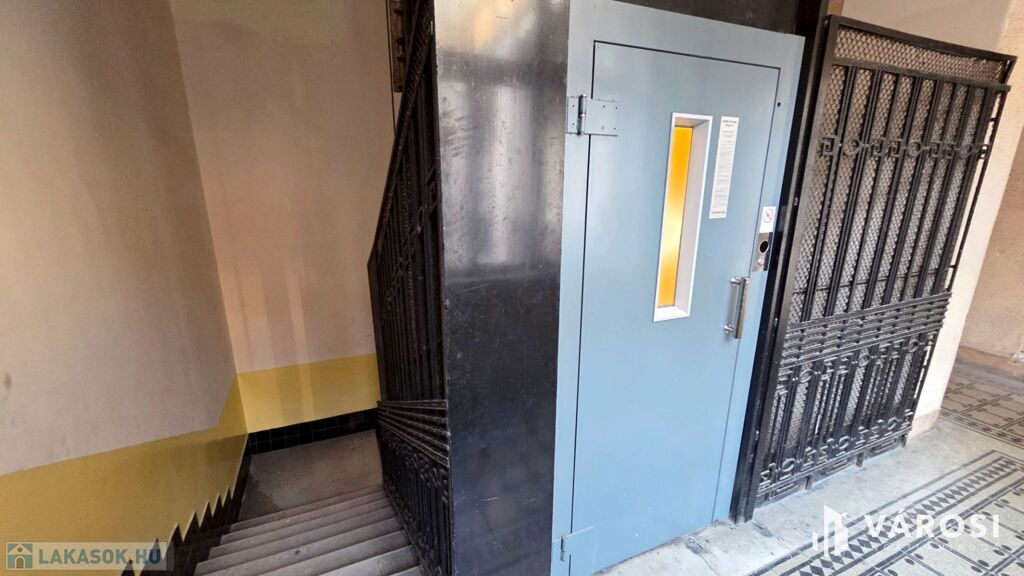 A lakás egy liftes társasház 5. emeletén található, legfelső, tetőtéri jellegű (lift a 4. emeletig visz).